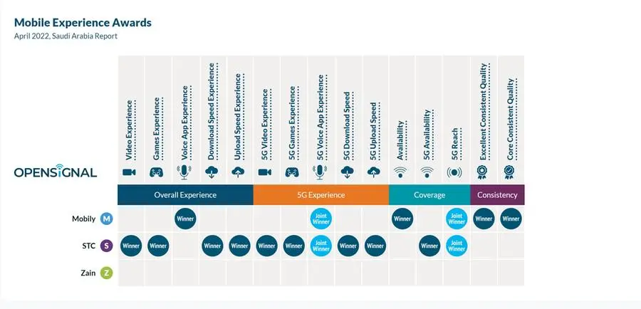In terms of the availability of 5G network, STC received the 5G Availability Award, scoring 30.1%, while Mobily and Zain received 22.8% and 24.1%, respectively.