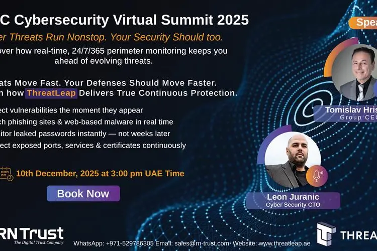 Dubai, UAE : RNTrust Group announces a high-level GCC Cybersecurity Summit taking place in Dubai on Wednesday, December 10, 2025. Designed exclusively for cybersecurity leaders and professionals across the GCC region, the summit will serve as a premier platform to examine emerging cyber threats, strengthen regional security capabilities, and promote strategic cooperation among government entities, critical-infrastructure operators, and industry stakeholders.