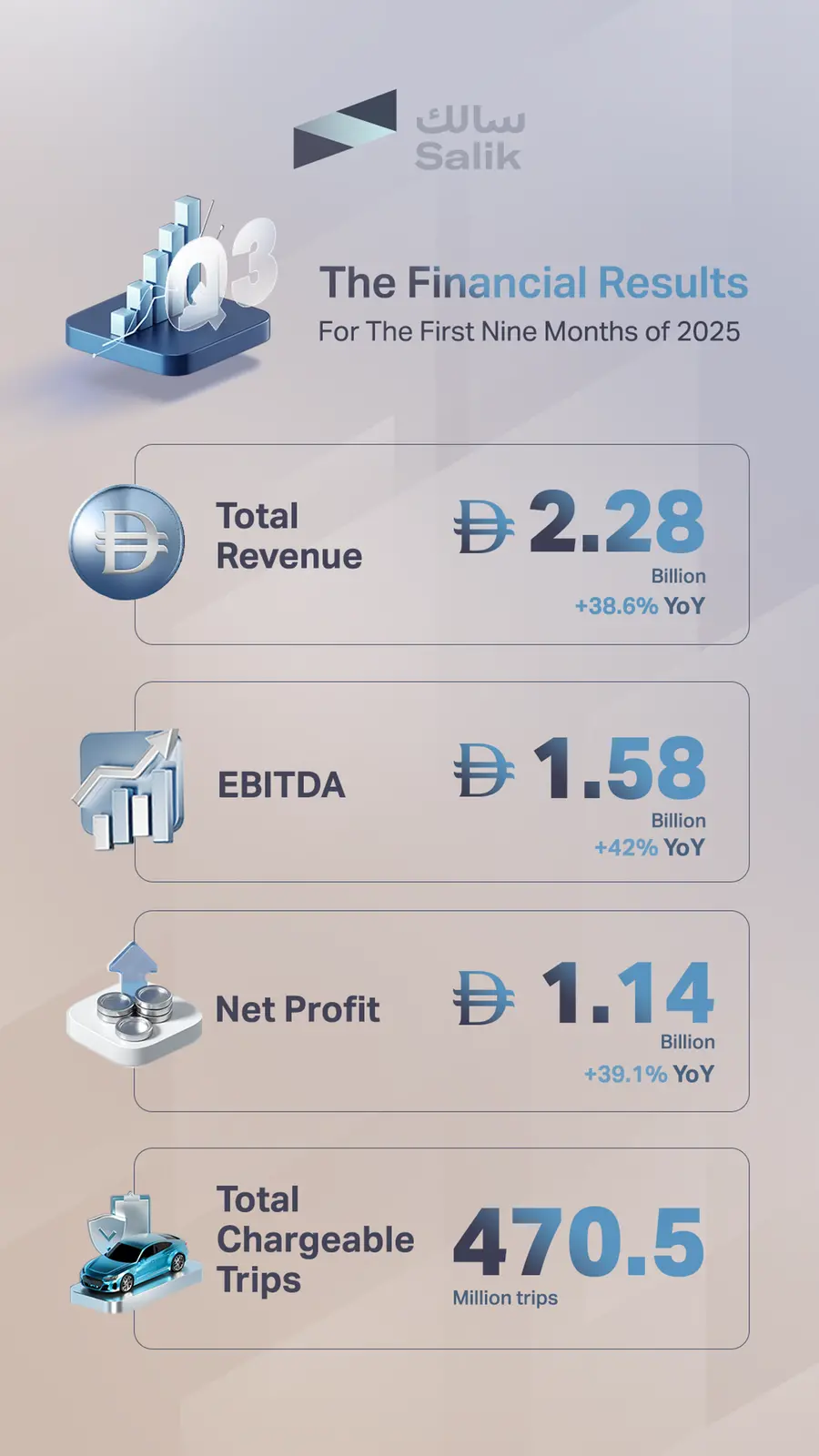 “Salik’s performance during the first nine months of 2025 reflects the economic growth witnessed in Dubai and the attractive investment environment that has made the emirate a global model in business sustainability and the competitiveness of vital sectors. It also highlights the strength of our operations and the continued resilience and scalability of our business model. Salik delivered strong top-line momentum, achieving a 39% year-on-year increase in total revenue, supported by continued growth in traffic volumes and the early benefits of variable pricing implemented earlier in January, alongside significant ancillary revenue growth.
