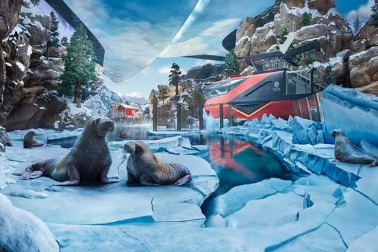 Near our planet’s northern pole in the Arctic lies the colorful Juhani Village and its harbor, home to a diverse range of animals including puffins and sea otters, as well as its main inhabitants, the walruses. The Arctic realm provides these mammals with an ideal environment to dive and relax, with innovations brought together by advanced technologies and a welfare-focused design. This dynamic habitat, among the many others at SeaWorld Abu Dhabi, sets a new standard of excellence in zoological care by featuring cutting edge technologies such as an Advanced Animal Lighting System (AALS) that simulates seasonal cycles and provides the animals with full-spectrum sun-light. A first-of-its-kind filtration system also supports a diverse underwater Arctic ecosystem with a range of fish and invertebrates to create a truly dynamic environment. The flexible walrus habitat allows for the animal care specialists to adapt the living spaces based on seasonal social patterns for the animals.
