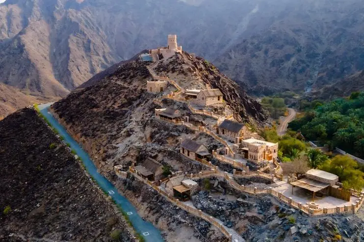 Najd Al Meqsar, in Khorfakkan’s Wadi Wishi, features seven luxury heritage units built within restored homes over 100 years old, overlooking ancient mountains and petroglyphs dating back more than 2,000 BCE. Developed in collaboration with “Mubadara,” the retreat includes access to a 300-year-old fort and scenic hiking trails leading to Al Rafisah Dam.