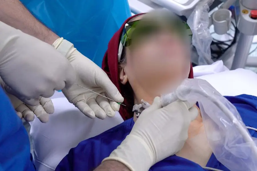 Rula had three nodules at the right of her thyroid gland and three at the left. She had been following up at the ENT department every six months for observation, ultrasound, and other tests to monitor the size of the nodules. However, in her last follow-up, doctors noticed an enlargement of one of the nodules, and the ENT surgeon suggested laser ablation.