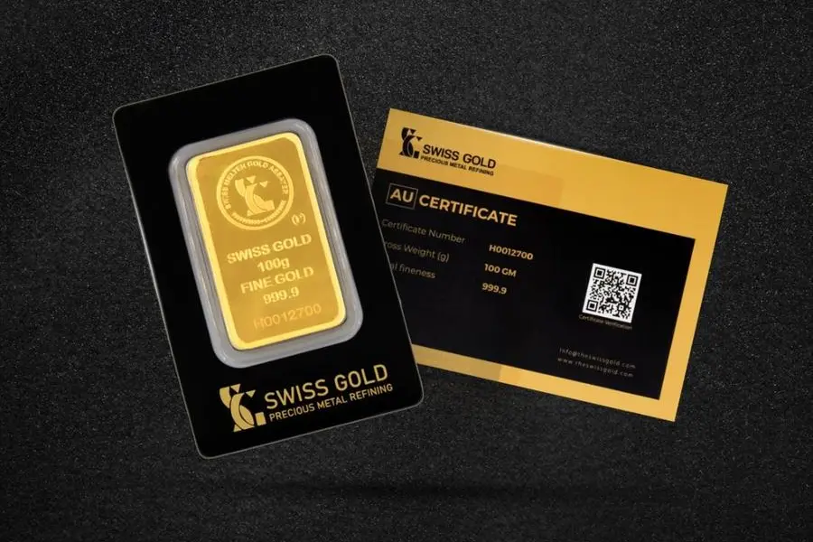 Backed by a seasoned team with deep roots in Precious Metals and financial markets, SwissGold GCC delivers a blend of tradition, trust, and innovation. Available in weights from 5g to 100g, each bar is packaged with a bold yet elegant identity, showcasing the brand's signature gold, black. Each bar comes with an authentic certificate, reinforcing SwissGold’s uncompromising commitment to purity, quality, and prestige.