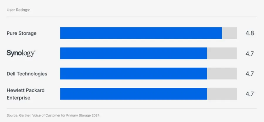 The 2025 Gartner Voice of the Customer for Primary Storage Platforms aggregates feedback from 52 verified end users of Synology solutions. As of December 31, 2024, Synology earned an overall rating of 4.7 out of 5.