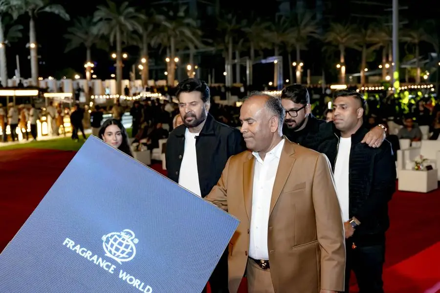 The celebrations marking Fragrance World’s presence in 150 countries began with a grand event at Expo City Dubai. The celebration logo was unveiled through a spectacular drone show that painted the sky with colors and narrated the history of Fragrance World, carrying the digital signature of Chairman and Founder Poland Moosa. The logo was unveiled in the presence of popular Indian film actor Mammootty, CEO P. V. Salam, Joint CEO P. V. Safeer, and Mr. Labeeb. This was followed by the premiere of the docu-fiction film “Kunjon,” based on the life of Poland Moosa. The film was directed by Jeevan Jose and shot across several foreign countries, featuring nearly 200 actors in major and minor roles. It is scheduled to be released on digital platforms in the coming days. The cover of the book “Fragrance of Legacy,” written by Sebin Paulose based on the biography of Poland Moosa, was also unveiled on stage. The author, along with his friend Abdulla who inspired the work, was present at the event.