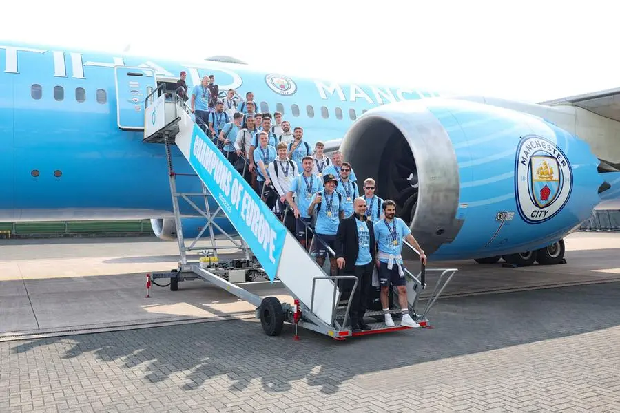 Abu Dhabi, United Arab Emirates – Etihad Airways, the UAE’s national airline, today flew the victorious Manchester City team home on a unique Club-liveried Boeing 787-9 Dreamliner. The charter flight followed their historic Saturday night win in Istanbul and is the first time a European champion team has flown home on their own branded aircraft.