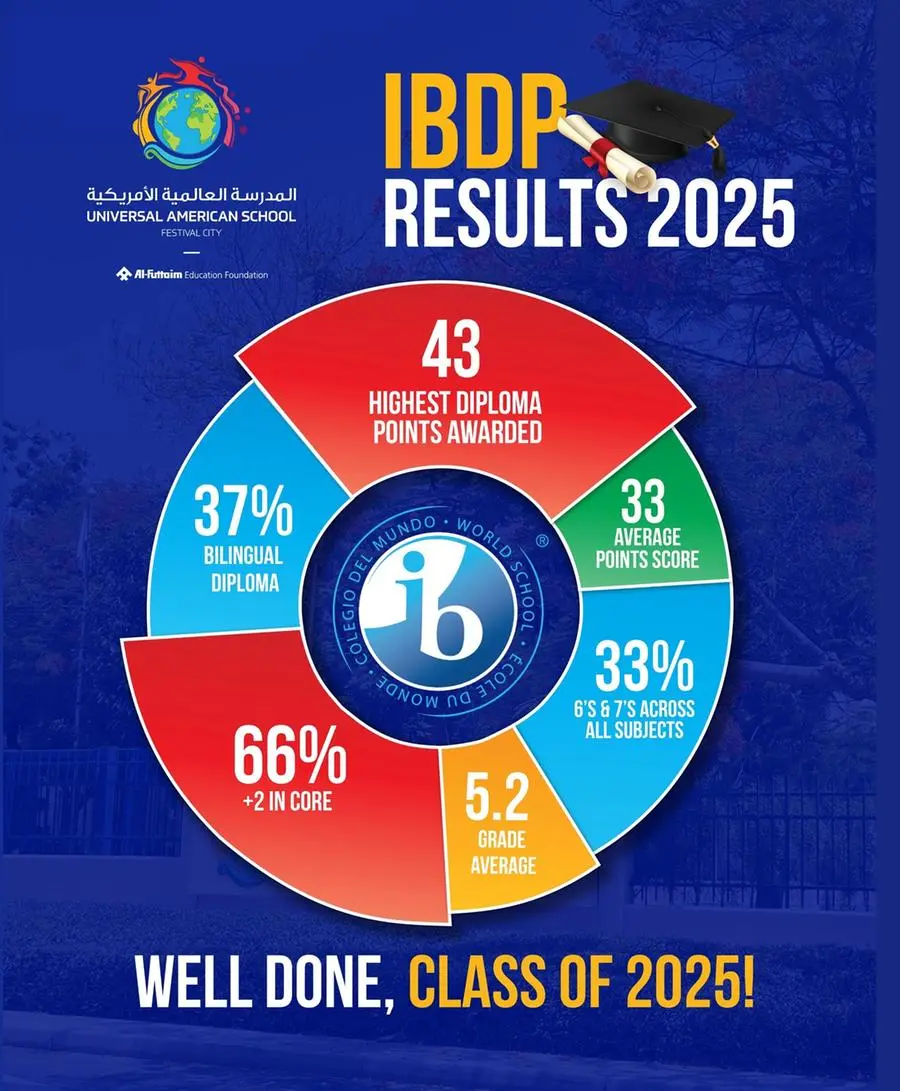 Kevin Loft, School Director of Universal American School, described the results as the culmination of years of effort, intellectual curiosity, and personal growth. He said: “It’s a collective accomplishment and a moment of real pride for the entire school.”