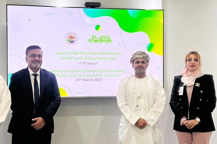 Muscat: In line with its relentless aspirations to expand its portfolio of services and offer high-end solutions, Oman Investment & Finance Company ‘Khedmah’ signed an agreement with Dhofar Insurance Company to enable and collect utility bill insurance premiums for Dhofar Insurance Company. This agreement allows for ‘Khedmah’ app users to select the type of insurance they prefer, as well as the insurance amount, and gives access to the newly launched bill insurance service, which is entirely optional, and is aligned with the company’s efforts to enhance its overall customer experience, and ensure flexibility and ease of access.