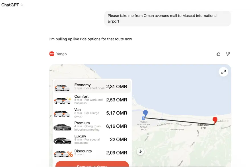 Oman, Muscat – Yango Ride, the ride-hailing service from global tech company Yango Group, has launched an official app in ChatGPT, enabling users to plan routes and rides directly within the conversation. The rollout is a global update covering more than 25 countries where Yango operates, spanning regions from the Middle East and South Asia to Africa and Latin America.