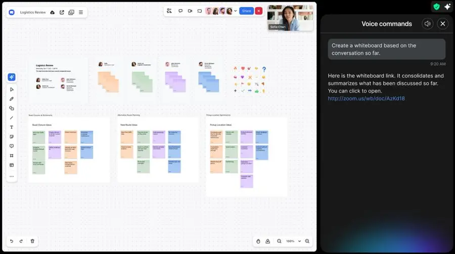 Users can ask AI Companion to turn their conversation into a Zoom Whiteboard using their voice in a Zoom Room.