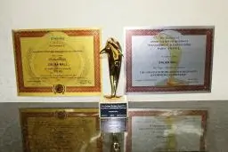 The Business Excellence Award, which Dalma Mall won at the recently concluded "The Bizz 2014 Awards", held at the Emirates Palace in Abu Dhabi, UAE. The award was received by Mr. Bhupinder Singh, the General Manager and Chief Financial Officer at Dalma Mall, and Mr. Mazen Chedid - Senior Marketing Executive at Dalma Mall.