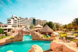 Danat Al Ain Resort, managed by Danat Hotels & Resorts, a division of National Corporation for Tourism & Hotels is located in Al Ain, the famous 'Garden City of the Gulf', a haven of peace and tranquility. The resort is a 75-minute drive from Dubai and 90 minutes drive from Abu Dhabi but a short five-minute drive from Al Ain Centre. The 5-star property features 216 rooms and suites with balconies overlooking the lush green gardens or the Jebel Hafeet Mountain. The spacious suites are elegantly furnished with satellite TVs, high speed internet access, 24-hour in-room dining and mini bar. There are 22 Mediterranean style villas, ranging from one-bedroom apartments to 2-bedroom detached villas. Danat Al Ain Resort encompasses a choice of eight bars and restaurants ranging from contemporary Italian to fresh and modern and Indian cuisines namely Arabesque, Luce, Tanjore, Horse & Jockey Pub, Tea Lounge, Oasis Café, Oasis Pool Bar and Shooters. For meetings and conferences, the ballroom can seat up to 1000 guests while the other meeting rooms can accommodate smaller groups. For complete well being, Danat Al Ain Resort has three swimming pools, two gymnasiums, Jacuzzi, steam room and sauna, squash and tennis courts, Spa and outdoor play area.