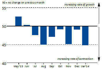 Weighing on the headline index in January were sharp and accelerated decreases in output and new orders, the most marked since August in both cases. Behind these latest falls - the eighth in successive months respectively - were political instability and concerns over security, according to anecdotal evidence. Similarly, instability in the broader region also contributed to a fall in new export orders.