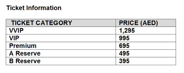 General public on-sale starts Wednesday 27th February at 12:00 pm and tickets will be available at www.ticketmaster.ae and all Virgin Megastores across the UAE