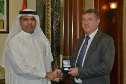 At the end of the meeting, Ahmed Mahboob Musabih presented Alun Watkins with a souvenir coin as a memento of his tenure in Dubai, and whished his successor Douglas Macpherson a fruitful and enjoyable experience ahead.
