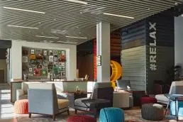 The interiors reflect the inspiration that Rove Hotels assimilates from its surroundings with the blend of Dubai's heritage and cosmopolitan outlook with a modern, unexpected twist. Highly design-influenced, it uses its limited service offering to facilitate and encourage interaction and exploration of the venue.