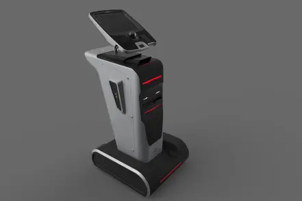 Outfitted with an ultrasonic sensor on each side coupled together with an internal GPS tracker, the R35 is able to maneuver intelligently across the floor and greet patrons to assist them with various tasks. As it is constantly on the move, the R35 is self-reliant where it utilizes rechargeable 12V batteries and safely returns to the charging position when required. It has a standby duration of 48 hours and 12-hour battery life when in constant use. The R35 is also equipped with a keypad with a secure card reader and an in-built printer for receipts amongst other features. It also comes equipped a 12.3” display, ideal for quick assistance via video conference with a customer success officer to attend to patrons in completing their errands.