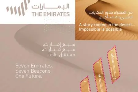 The stamp design embodies the seven lines that make up the map of the Emirates, representing the identity and proud aspirations of the nation, "seven emirates, seven founders and seven beacons towards one future". The stamp design includes the brand slogan "impossible is possible". The importance of the brand identity lies in that it is a symbol of the country's journey, its many achievements over the past half century, and its ambitious vision for the future.