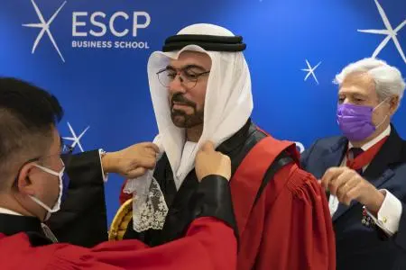 Dubai-The ESCP European Business School, the world’s longest-established business school, with equally accredited campuses in Paris, London, Berlin, Madrid, Turin, and Warsaw, has presented His Excellency Mohammad Abdullah Al Gergawi, UAE Minister of Cabinet Affairs, and Chairman of the Executive Office of Sheikh Mohammed bin Rashid Al Maktoum, with an honorary doctorate in government management and future strategies.
