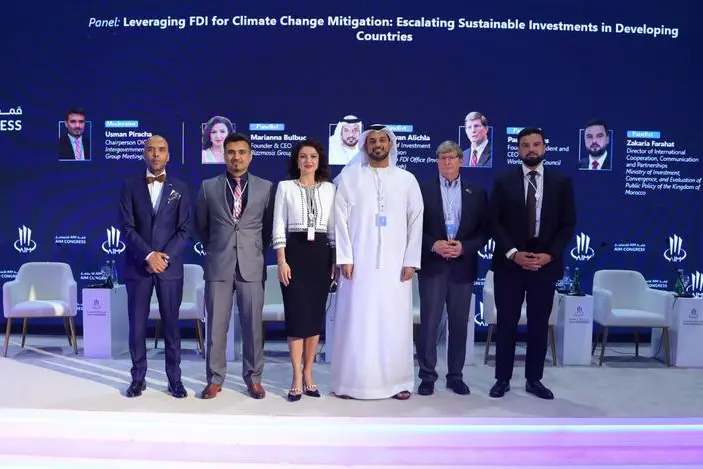 The session "Leveraging FDI for Climate Change Mitigation" addressed the importance of sustainable investments in developing countries. Speakers Ms Marianna Bulbuc, CEO of Bizzmosis Group; Mr Marwan Alichla, Head of Investment Promotion at Sharjah FDI office; Mr Paul Holthus, Founding President of World Ocean Council; and Mr Zakaria Farahat, Director of International Cooperation at the Ministry of Investment, Convergence, and Evaluation of Public Policy of Morocco, highlighted the role of FDI in supporting climate goals in developing countries.