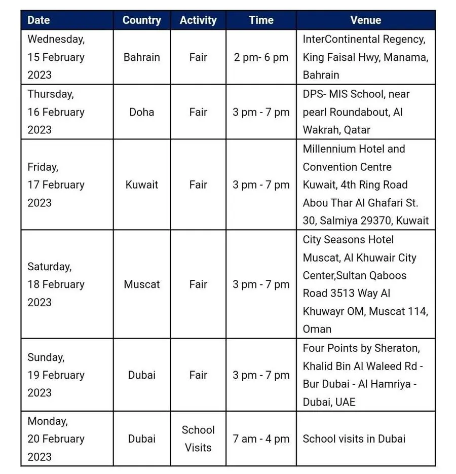 Study in Canada with GLinks roadshow moves from Bahrain on Wednesday, February, 15, to Doha, Qatar on February 16, to Kuwait on Friday, February 17, 2023. Muscat, Oman will host the roadshow on Saturday, February 18, 2023 before it shifts to Dubai on Sunday, February 19, 2023.