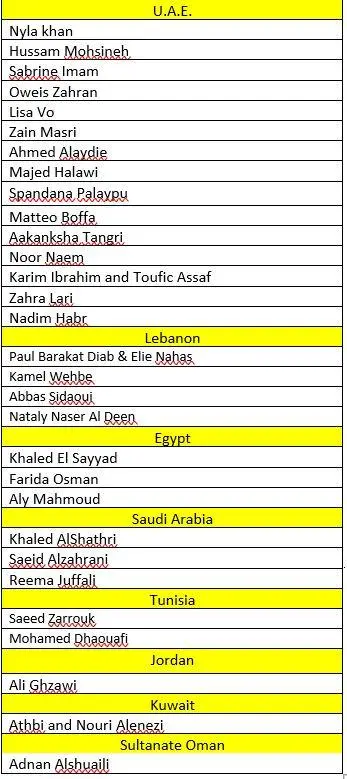• The final 30 comprises of residents of the UAE, Saudi Arabia, Jordan, Egypt, Lebanon, Oman, Kuwait, and Tunisia.