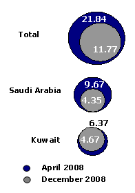 Assets Under Management (AUM) for Saudi equity funds contracted by 55% to USD 4.35 bn from April 2008 levels.