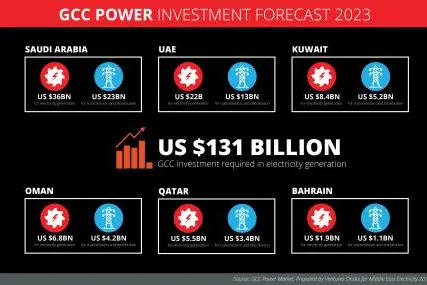 Saudi Arabia accounts for the largest spend needs with US $36bn required for generation and US $23bn for transmission and distribution, followed by the UAE at US $22bn investment needed for generation and US $13bn for transmission and distribution. Kuwait requires the third largest investment with US $8.4bn needed for generation and US $5.2bn for transmission and distribution, followed by Oman at US $6.8bn and US $4.2bn respectively, Qatar requires US $5.5bn and US $3.4bn respectively, with Bahrain needing the least investment level at US $1.9bn and US $1.1bn.