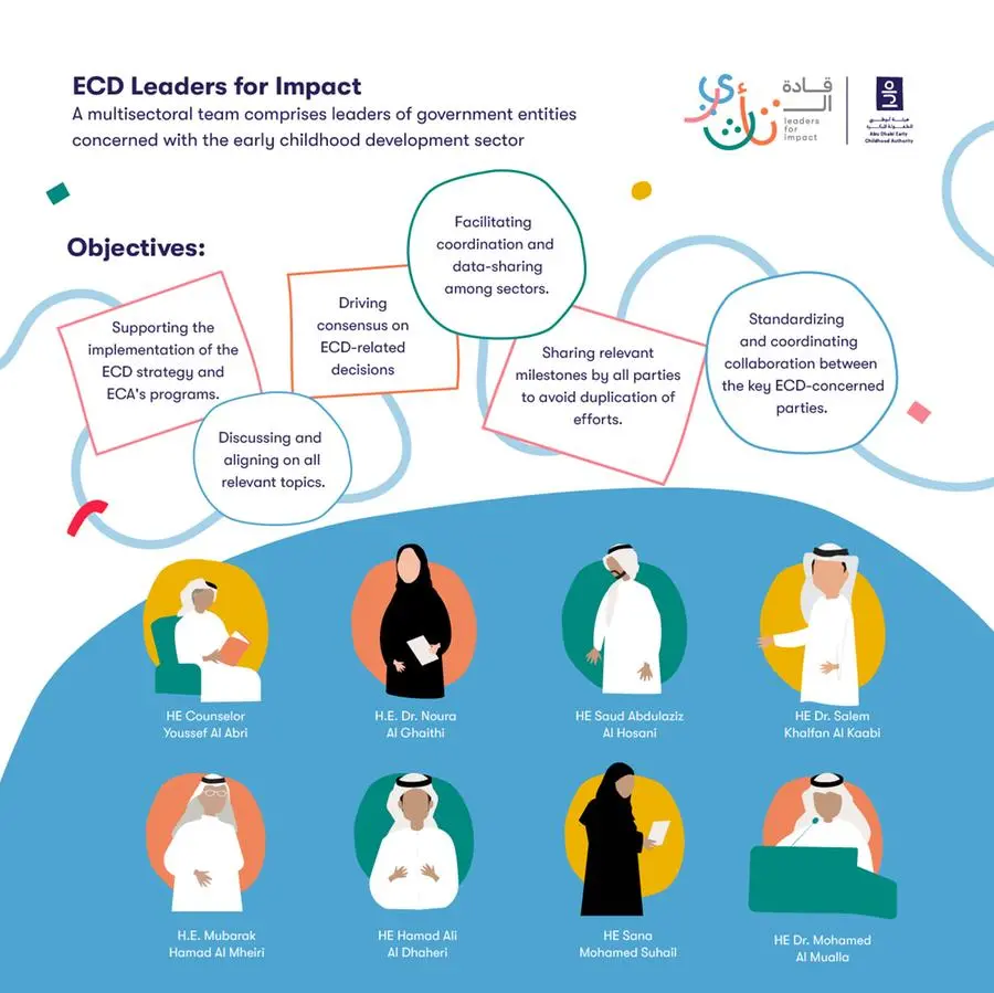 The Leaders for Impact team will meet quarterly to discuss the latest developments of the seven strategic programs of the Abu Dhabi Strategy for Early Childhood Development for 2035, namely: Public Participation, Research, Data, Family Support, Policies and Legislation, Child Protection, and Human Capital. The team will also work on issuing the necessary recommendations for developing policies and strategies to enhance lifestyles and promoting children's well-being and development standards.