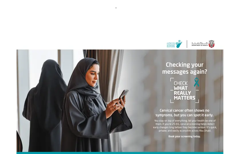 Abu Dhabi: As part of Cervical Cancer Month, the Abu Dhabi Public Health Centre (ADPHC) has launched its latest cervical cancer prevention initiative under the “Check What Really Matters” campaign, calling on women to prioritise routine screening, even when they feel healthy.