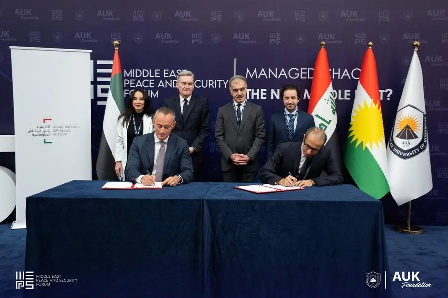 Abu Dhabi, UAE: The Anwar Gargash Diplomatic Academy (AGDA), the UAE’s foremost centre for building diplomatic and leadership capabilities, has signed a Memorandum of Understanding with the Middle East Peace and Security (MEPS) Forum, an institute based at the American University in Dohuk Governorate. The signing took place alongside the 2025 Middle East Peace and Security Forum, held this year under the theme “Managed Chaos: The New Middle East?”