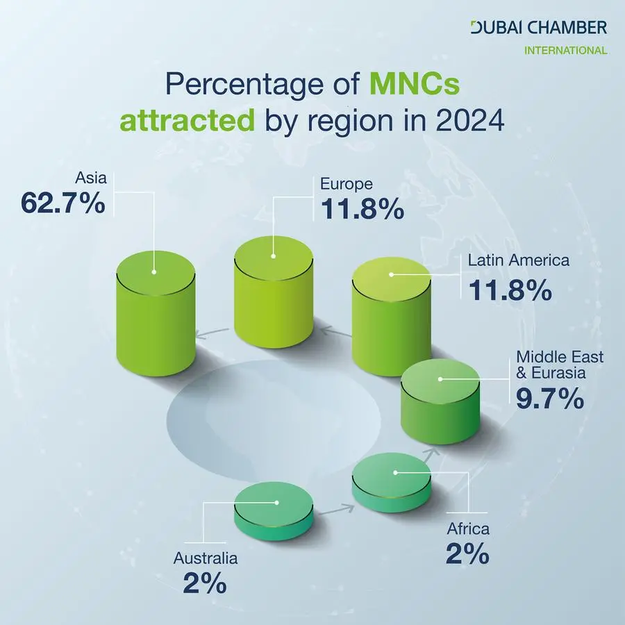 Dubai, UAE – Dubai International Chamber, one of the three chambers operating under Dubai Chambers, has revealed that 62.7% of the multinational companies (MNCs) it attracted to Dubai in 2024 originated from Asia, underlining Dubai’s growing status as a key investment hub for international corporations.