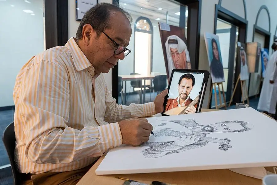 Held in cooperation with the Dubai Culture, the Dubai Culture and Arts Authority, ‘Cultural Figures’ runs at Al Wathba Library in Abu Dhabi until 30 November 2022. The exhibition was inaugurated with a live painting session by the prominent cartoonist Hassan Idlebi for the Iraqi musician and oud player Naseer Shamma.