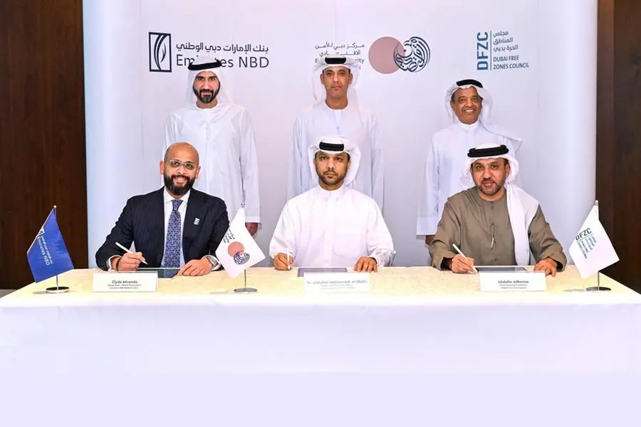 Dubai, United Arab Emirates: The Economic Security Centre of Dubai, Dubai Free Zones Council, and Emirates NBD, a leading banking group in the Middle East, North Africa and Türkiye (MENAT) region, announced the signing of a Memorandum of Understanding (MoU) to establish a strategic partnership aimed at enhancing the investor journey and facilitating ease of doing business. The agreement supports the continued growth of Dubai’s free zones ecosystem and aligns with the Emirate’s commitment to further advancing its economic model and reinforcing its global competitiveness.