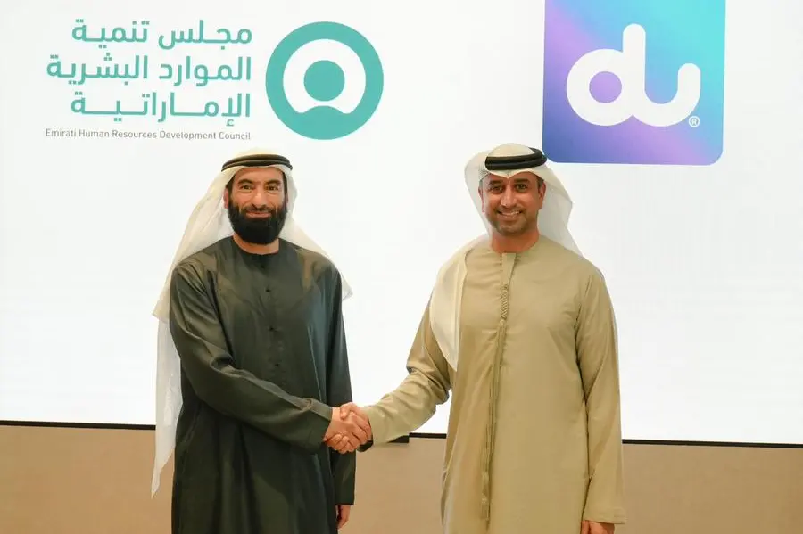 Dubai: The Emirati Human Resources Development Council (EHRDC) in Dubai signed a Memorandum of Understanding (MoU) with du, the leading provider of telecommunications and digital services. Under the agreement, both parties will collaborate to empower Emirati talents in future-driven industries, further supporting the Government of UAE’s efforts in promoting Emiratisation and nurture a new generation of qualified UAE nationals that are capable of leading digital transformation across diverse sectors.