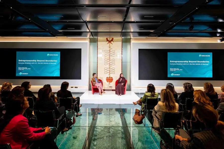 Abu Dhabi: Her Excellency Alia Bint Abdulla Al Mazrouei, Minister of State for Entrepreneurship, participated in a panel discussion titled ‘Entrepreneurship Without Borders,’ hosted by Claudia Parzani, Chair of the Milan Stock Exchange. The session, held as part of the third edition of Investopia Europe in Milan, brought together over 100 Italian women entrepreneurs. Discussions focused on developments in the business landscapes of the UAE and Italy and highlighted the importance of empowering women in economic and commercial sectors.