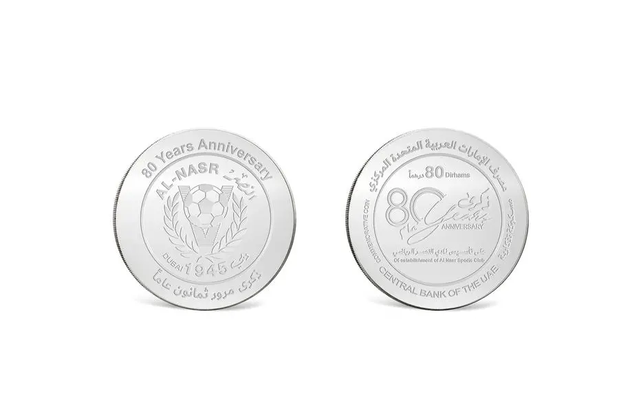 Abu Dhabi: The Central Bank of the United Arab Emirates (CBUAE), in collaboration with Al Nasr Sports Club, has issued commemorative silver coins to celebrate the 80th anniversary of the establishment of Al Nasr Sports Club, one of the most prestigious sports clubs in the UAE. The issuance of the coin is a tribute to the Club’s role in supporting the sports movement and enhancing national identity over the past eight decades.