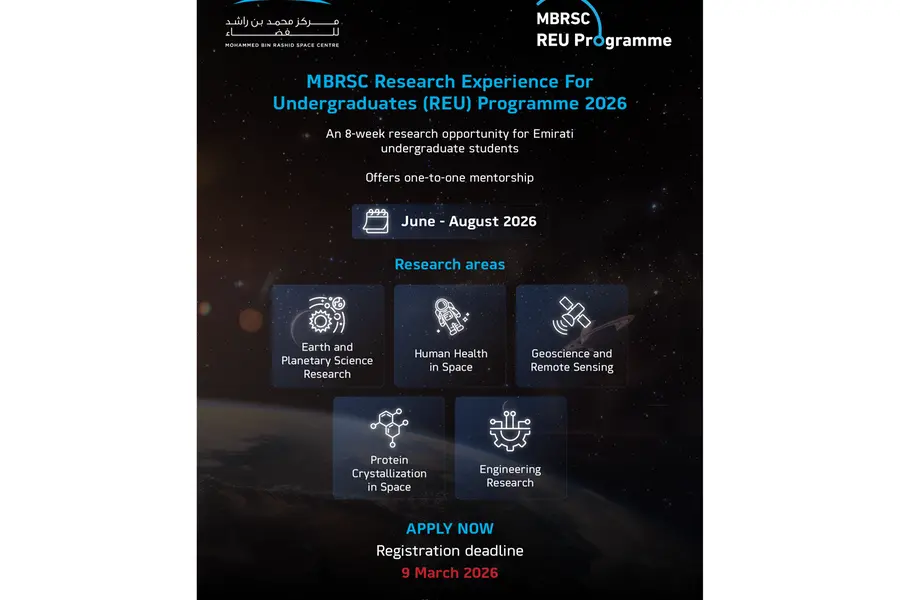 Dubai – UAE: The Mohammed Bin Rashid Space Centre (MBRSC) has opened applications for its Research Experience for Undergraduates (REU) Programme 2026, underscoring its ongoing commitment to cultivating a new generation of Emirati talent in space science and related STEM disciplines.