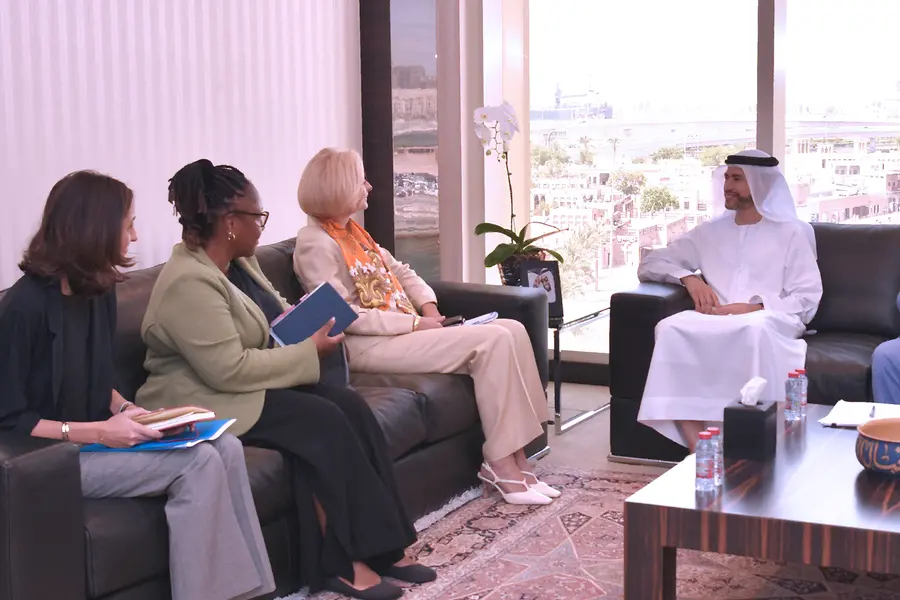 Dubai, UAE: – His Excellency Mohamed bin Hadi Al Hussaini, Minister of State for Financial Affairs, met with Her Excellency Martina Strong, the United States Ambassador to the United Arab Emirates, at the Ministry’s offices in Dubai, in the presence of several officials from the Ministry and members from the US Embassy.