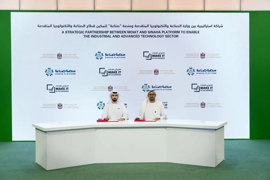 The agreement was signed by His Excellency Osama Amir Fadhel, Assistant Undersecretary for the Industrial Accelerators Sector at MoIAT, and Mansour Mohammed bin Kardous Al Ameri, Deputy CEO of the Sinaha platform, with the ceremony taking place on the sidelines of the fourth edition of Make it in the Emirates Forum, held at the Abu Dhabi National Exhibition Centre.