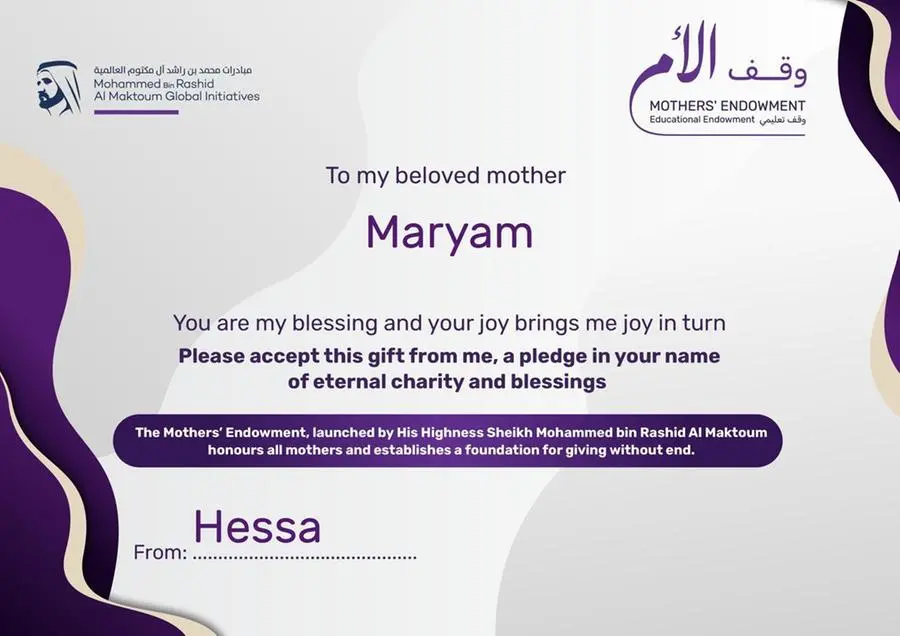 Organized by the Mohammed bin Rashid Al Maktoum Global Initiatives, the campaign allows contributors to make donations in their mothers’ names to honor them, highlighting the role of mothers in supporting their children’s education. The campaign also establishes the values of honoring parents, kindness, compassion and solidarity, while solidifying the UAE’s humanitarian role, while reviving the culture of endowments as a development tool that ensures sustainable charity and supports global efforts of sustainable development.