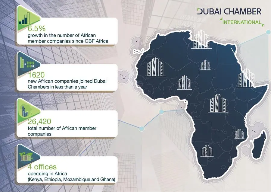 Dubai, UAE –Over 1,600 new African member companies have registered with Dubai Chambers since October 2021, growing 6.5% to reach 26,420 today, the Chambers have revealed.