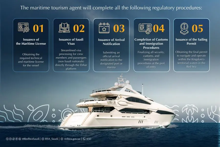 The SRSA has launched the first series of the guide, dedicated to yachting activities, offering a clear and practical end-to-end pathway for a yacht’s journey from arrival to departure. This includes procedures, documentation, licenses and permits, mechanisms for identifying and confirming the port of entry (port/marina) through a licensed agent, as well as directories of approved service providers (maritime tourism agents, yacht charter companies, and marinas).