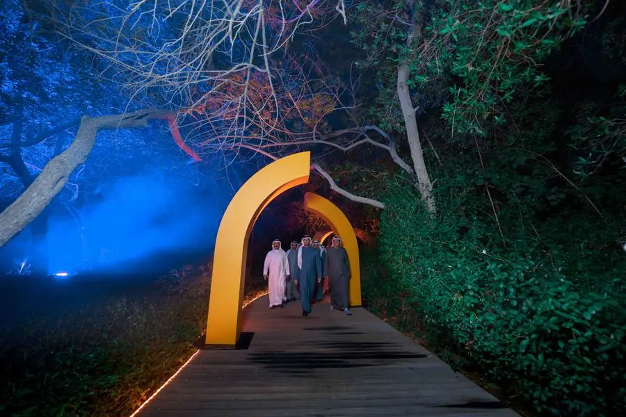 The Deputy Ruler of Sharjah, toured the Noor Island, reviewing artistic displays that express the meanings and significance of the new identity of Sharjah. This identity was derived from the rich history of Sharjah and its distinctive features in various artistic, architectural, cultural, and other fields. It reflects Sharjah's progress towards the future with a proactive mindset based on knowledge, information, and technology.