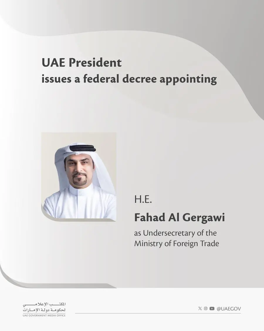 United Arab Emirates: UAE President His Highness Sheikh Mohamed bin Zayed Al Nahyan, has issued a federal decree appointing His Excellency Fahad Al Gergawi as Undersecretary of the Ministry of Foreign Trade.