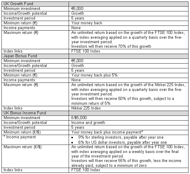 - More flexibility - for the first time investors in this fund series can choose between a three- and five-year investment term; and between growth only or income and growth funds.