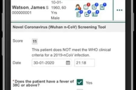 The functionality enables clinicians to screen patients for 2019-nCoV, using World Health Organisation (WHO) guidance, and a link to the Wuhan Coronavirus Global Cases tracking app provided by the Johns Hopkins Center for Systems Science and Engineering in the US.