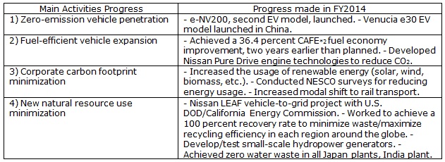 Nissan Green Program 2016 (NGP2016) yields outstanding results in FY2014