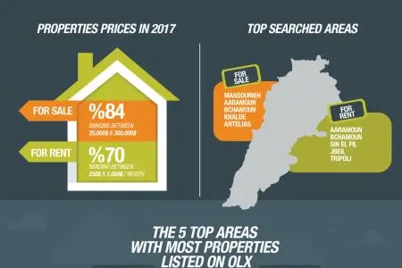 Beirut, Lebanon – OLX Lebanon, the leading property platform in Lebanon, reveals its annual property report for 2017, highlighting a redistribution of demand and supply to mid-market properties in various regions. Almost 10 million visits were recorded to the Property section only in 2017.