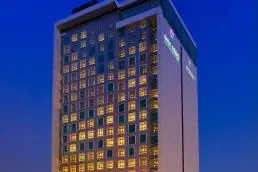 Park Regis Kris Kin Hotel Dubai is conveniently located opposite Burjuman Shopping Centre adjacent to the Dubai Metro few minutes' drive from the airport and within easy reach of the city's major leisure and business establishments. The 386-room 5-star hotel is the ideal address for both business and leisure travellers enjoying close proximity to Dubai Museum, Spice Souk, Gold Souk and Dubai World Trade Centre. It boasts a range of superb restaurants, a sports bar; rooftop pool, fitness centre, event facilities for up to 220 people and a business centre. Room amenities include free Wi-Fi, interactive TV system with 100+ channels, desk and mini-bar, tea- and coffee-making equipment, designer bathrooms and 24-hour room service.